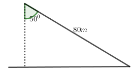 Bạn An chơi thả diều. Tại thời điểm dây diều dài 80(m) và tạo với phương thẳng đứng một góc \({50^0}\) . Tính khoảng cách d từ diều đến mặt đất tại thời điểm đó (giả sử dây diều căng và không giãn; kết quả làm tròn đến chữ số thập phân thứ hai).