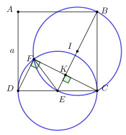 Cho hình vuông ABCD cạnh bằng a. Gọi E là trung điểm của CD. Tính độ dài dây cung chung CF của