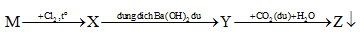 Cho kim loại M và các chất X, Y, Z thỏa mãn sơ đồ phản ứng sau: