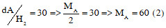 b) Xác định công thức phân tử của A biết tỉ khối hơi của A so với hiđro là 30. Viết công thức cấu tạo có thể có của A