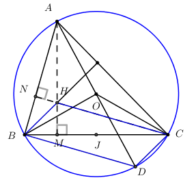 Cho \(\left( {O;\;R} \right)\) ngoại tiếp \(\Delta ABC.\) Điểm \(H\) thỏa mãn \(\overrightarrow {OA} +