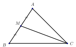 Cho tam giác ABC có phương trình \(\left( {AB} \right):\,\,2x - y - 1 = 0,\) phương trình \(\left( {BC} \right):\,\,x + y - 5 = 0\). Trung tuyến \(\left( {CM} \right):\,\,2x + y - 5 = 0\). Lập phương trình AC.