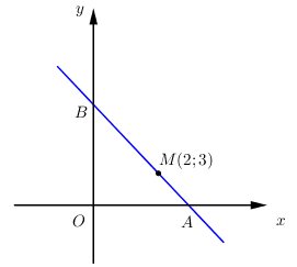 Lập phương trình đường thẳng (d) đi qua \(M\left( {2;3} \right)\) và cắt các tia Ox, Oy tại A, B