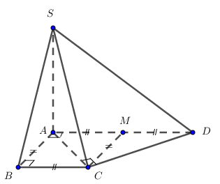 (D2007): Chóp S.ABCD, \(SA \bot \left( {ABCD} \right);\,ABCD\) là hình thang vuông ở A và B. \(AB = BC =