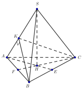 Chóp đều S.ABC. Vẽ \(BK \bot SA\). Chứng minh \(SA \bot \left( {BKC} \right)\).