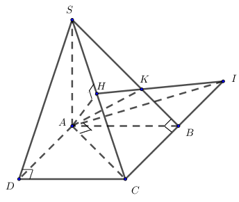 b) Đường thẳng qua A và vuông góc AC cắt BC tại I. Vẽ \(AH \bot SC;\,\,HI \cap SB = K\). Chứng minh \(AK \bot \left( {SBC} \right)\).