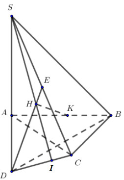 Chóp S.ABCD, \(SA \bot \left( {ABC} \right);\,\,\Delta ABC\) vuông ở C. \(D\) thuộc tia đối của tia AS. I