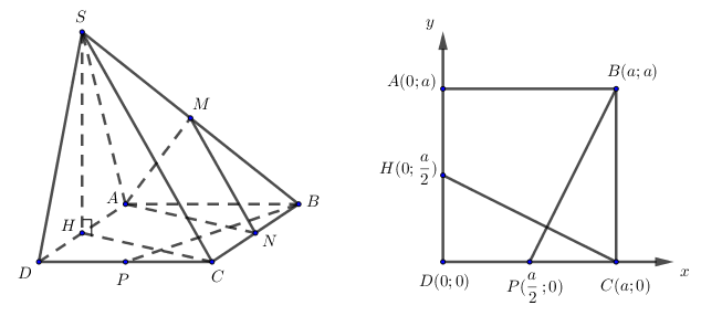 (A2007): Cho hình chóp S.ABCD, \(\left( {SAD} \right) \bot \left( {ABCD} \right)\). \(\Delta SAD\) đều, ABCD là hình vuông. M, N, P là trung điểm của SB, BC, CD. Chứng minh \(AM \bot BP\) .