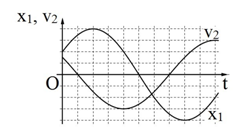 Hai vật M1 và M2 dao động điều hòa cùng tần số. Hình bên là đồ thị biểu diễn sự phụ thuộc của li độ x của M1 và vận tốc v2 của M2 theo thời gian t. Hai dao động của M1 và M2 lệch pha nhau