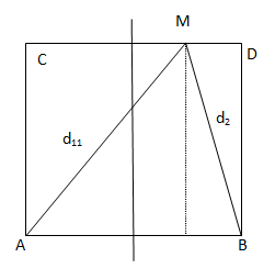 Ở mặt nước có hai nguồn kết hợp đặt tại hai điểm A và B, dao động cùng pha theo phương thẳng đứng, phát ra hai sóng có bước sóng λ. Trên AB có 9 vị trí mà ở đó các phần tử nước dao động với biên độ cực đại. C và D là hai điểm ở mặt nước sao cho ABCD là hình vuông. M là một điểm thuộc cạnh CD và nằm trên vân cực đại giao thoa bậc nhất (MA − MB = λ). Biết phần tử tại M dao động cùng pha với các nguồn. Độ dài đoạn AB gần nhất với giá trị nào sau đây?