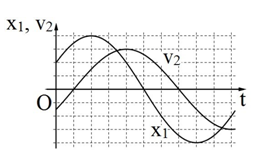 Hai vật M1 và M2 dao động điều hòa cùng tần số. Hình bên là đồ thị biểu diễn sự phụ thuộc của li độ x1 của M1 và vận tốc v2 của M2 theo thời gian t. Hai dao động của M1 và M2 lệch pha nhau