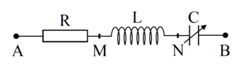 Đặt điện áp uAB = 20cos100πt (V) vào hai đầu đoạn mạch AB như hình bên, trong đó tụ điện có điện dung C thay đổi được. Khi C = C0 thì điện áp hiệu dụng giữa hai đầu đoạn mạch AN đạt giá trị cực đại và bằng 20 V. Khi C = 0,5C0 thì biểu thức điện áp giữa hai đầu tụ điện là