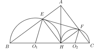 1) Cho tam giác ABC có AB = 4, AC = 3, BC = 5, đường cao AH. Trên nửa mặt phẳng bờ BC chứa điểm A vẽ hai nửa đường tròn đường kính BH và HC. Hai nửa đường tròn này cắt AB, AC lần lượt tại E và F.