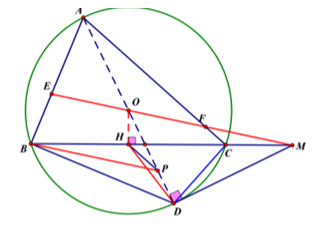 Cho tam giác ABC (AB < AC) nhọn nội tiếp (O), AD là đường kính của (O), H là trung điểm BC. Tiếp tuyến tại D của (O) cắt BC tại M. MO cắt AB, AC lần lượt tại E, F.