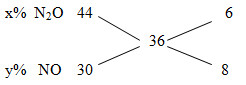 Một hỗn hợp khí gồm có N2O , NO ở điều kiện tiêu chuẩn có tỉ khối so với oxi là 1,125. Phần trăm thể tích của N2O và NO trong hỗn hợp lần lượt là