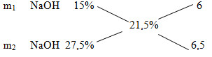 Hỏi phải lấy 2 dung dịch NaOH 15% và 27,5% mỗi dung dịch bao nhiêu gam trộn vào nhau để được 500ml dung dịch NaOH 21,5%, D = 1,23g/ml?