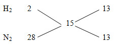 Gọi khối lượng phân tử trung bình của H2,N2 là \(\overline M \)