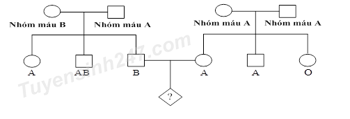 Dưới đây là sơ đồ phả hệ trong một gia đình về tính trạng nhóm máu. Biết nhóm máu do 1 gen