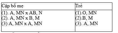 Trong nhà hộ sinh người ta nhầm lẫn ba đứa trẻ với ba cặp bố mẹ có các nhóm máu như sau: