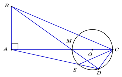 Cho tam giác ABC vuông tại A. Trên cạnh AC lấy M: 2MC < AC và M không trùng với C, vẽ đường tròn đường kính MC. Kẻ BM cắt đường tròn tại D. Đường thẳng DA cắt đường tròn tại S. Chứng minh rằng: