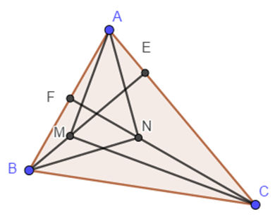 Cho tam giác ABC có 3 góc nhọn, đường cao BE, CF. Trên đoạn thẳng BE lấy M sao cho tam giác AMC