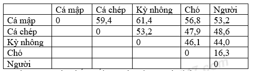 Từ bảng trên cho thấy mối quan hệ giữa các loài theo trật tự nào?