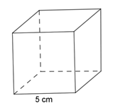 Thể tích của hình lập phương trong hình là: