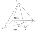Cho hình chóp tứ giác đều S.ABCD có cạnh đáy AB = 10 cm, đường cao SO = 12 cm. Hỏi thể tích