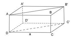 Hình hộp chữ nhật \(ABC\text{D}.A'B'C'D'\) có đáy ABCD là hình vuông cạnh a và diện tích hình