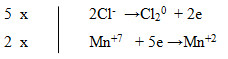 \(K\mathop {Mn}\limits^{ + 7} {O_4}\; + {\text{ }}H\mathop {Cl}\limits^{ - 1} \to {\text{ }}KCl\; + \mathop {{\text{ }}Mn}\limits^{ + 2} C{l_2} + {\text{ }}\mathop {C{l_2}}\limits^0 \; + {\text{ }}{H_2}O\)