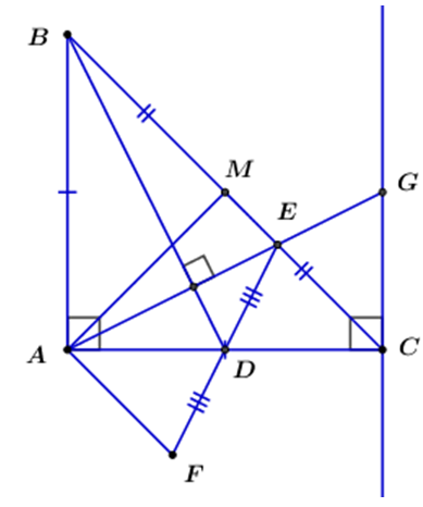 Cho tam giác ABC vuông tại A có AB = AC. Gọi M là trung điểm của BC, D là trung điểm của cạnh AC.