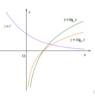 Cho các hàm số \(y = {\log _a}x,\,\,y = {\log _b}x\) và \(y = {c^x}\) (với a, b, c là các số dương khác 1) có đồ thị như hình vẽ