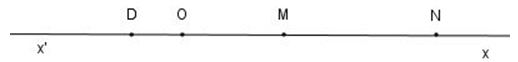 - Áp dụng nhận xét: Trên tia \(Ox,\ OM=a,\ ON=b,\) nếu \(0\ <\ a\ <b\) thì điểm M nằm giữa hai điểm O và N.