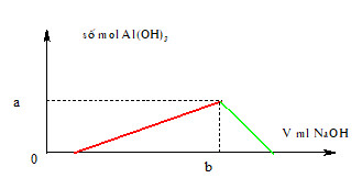 Cho từ từ V ml dung dịch NaOH 1M vào 200 ml dung dịch gồm HCl 0,5M và Al2(SO4)3 0,25M. Đồ thị biểu diễn khối lượng kết tủa theo V như hình dưới. Giá trị của a, b tương ứng