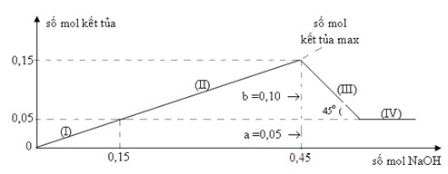 - (I), (II), tổng số mol kết tủa: (a + b) = 0,15 => b = 0,10 mol. → a:b