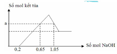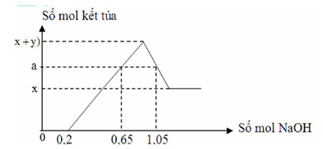 nOH- max tạo ra a mol kết tủa= 2x + 3y + (x+y-a) + 0,2= 1,05