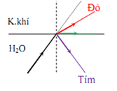 Chiếu từ nước ra không khí một chùm tia sáng song song rất hẹp (coi như một tia sáng) gồm 5 thành phần đơn sắc: tím, lam, đỏ, lục, vàng. Tia ló đơn sắc màu lục đi là là mặt nước (sát với mặt phân cách giữa hai môi trường). Không kể tia đơn sắc màu lục, các tia ló ra ngoài không khí là các tia đơn sắc màu: