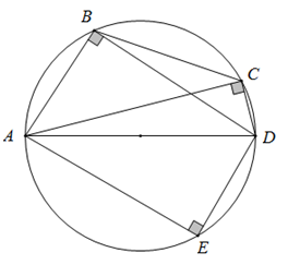 Ngũ giác ABCDE có \(\angle ABD = \angle ACD = \angle AED = 90^\circ \). Chọn câu đúng nhất: