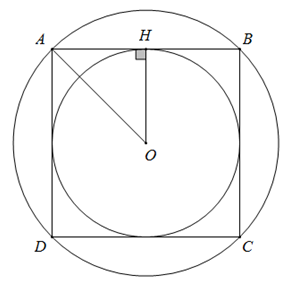 Chứng minh bán kính đường tròn ngoại tiếp và nội tiếp hình vuông là cạnh huyền và cạnh góc vuông của một tam giác vuông cân, từ đó suy ra tỉ lệ