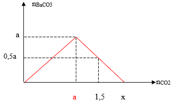 Sục CO2 vào dung dịch Ba(OH)2 ta có kết quả theo đồ thị như hình bên.