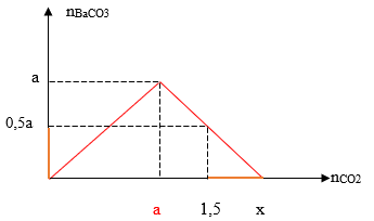Sục CO2 vào dung dịch Ba(OH)2 ta có kết quả theo đồ thị như hình bên. Giá trị của x