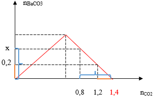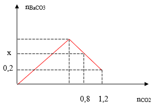 Sục CO2 vào dung dịch Ba(OH)2 ta có kết quả theo đồ thị như hình bên. Giá trị của x