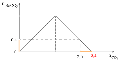 Sục từ từ khí CO2 vào 400 gam dung dịch Ba(OH)2. Kết quả thí nghiệm được biểu diễn trên đồ thị sau: