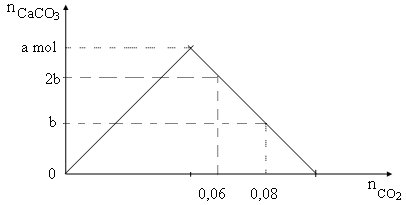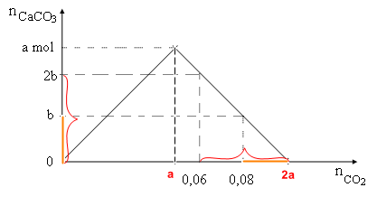 Sục từ từ khí CO2 vào dung dịch chứa Ca(OH)2, kết quả thí nghiệm được biểu diễn trên đồ thị sau (só liệu các chất tính theo đơn vị mol)