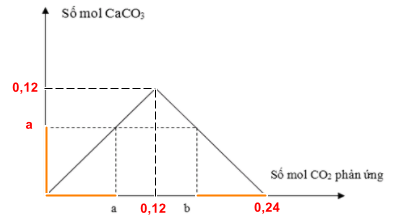 Thổi từ từ khí CO2 đến dư vào dung dịch chứa 0,12 mol Ca(OH)2. Sự phụ thuộc của số mol kết tủa thu được vào số mol CO2 phản ứng được biểu diễn theo đồ thị như sau :