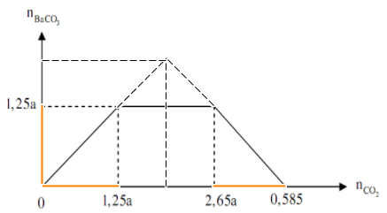 Sục V lít khí CO2 (đktc) vào dung dịch chứa hỗn hợp Ba(OH)2 và KOH, kết quả thí nghiệm được biểu diễn bằng đồ thị sau: