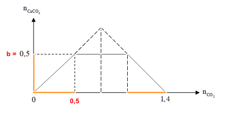 Khi sục từ từ đến dư CO2 vào dung dịch hỗn hợp gồm a mol NaOH và b mol Ca(OH)2, kết quả thí nghiệm được biểu diễn trên đồ thị