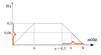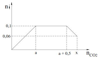 Sục CO2 vào dung dịch chứa Ca(OH)2 và NaOH ta thu được kết quả như hình bên.