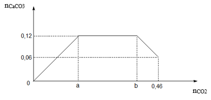 Sục CO2 vào dung dịch chứa Ca(OH)2 và NaOH ta thu được kết quả như hình bên. Giá trị của b