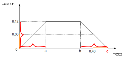 Sục CO2 vào dung dịch chứa Ca(OH)2 và NaOH ta thu được kết quả như hình bên.